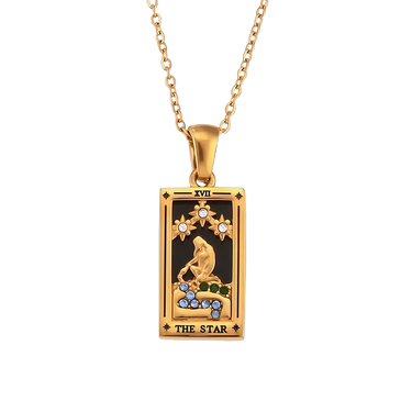 Inspirado en la carta del tarot La Estrella (The Star), este collar representa la calma tras el desafío: una sensación de confianza, sanación y suave optimismo. Refleja la luz que permanece incluso en los momentos de incertidumbre, guiándote hacia adelante con facilidad y seguridad.
